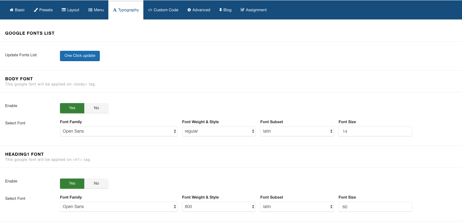 Check template Typography tab inside template settings, of course, you can set your own font-family. More information about Typography you can find >> >here< <<. Remember that not all Google Fonts support multiple scripts (like Latin, Cyrillic, and Greek for example). Use them if you need to use diacritical marks/chars, for native language letters.