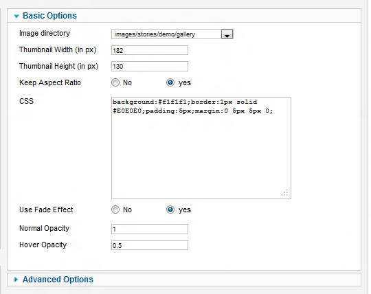Photo gallery is featured by simple image gallery module.Put Image resource directory at Image Directory field.