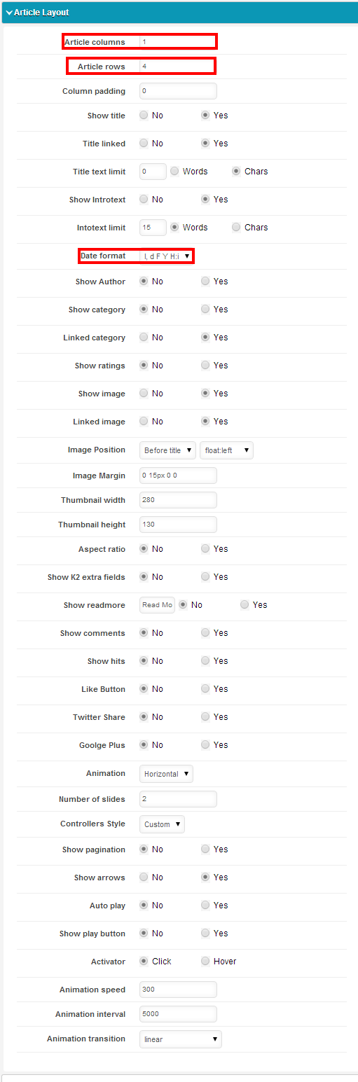 From article layout we fixed the article row and column. Here is also a lot of option for customize the articles.