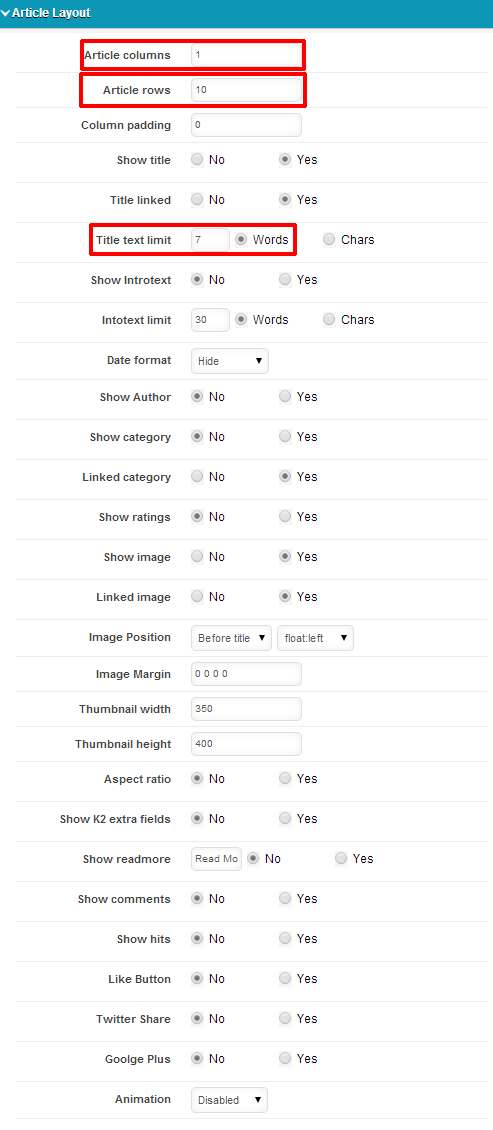 From article layout we fixed the article row and column. Here is also a lot of option for customize the articles.
