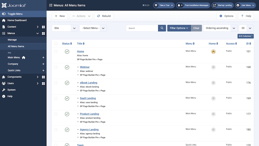There are six different home variations, all Pages were created using the SP Page Builder Pro component (more info with the screenshot below). Each of these home variations is uniquely designed. Each of these designs is built for specific business entities. Choose the home layout you prefer for your project.