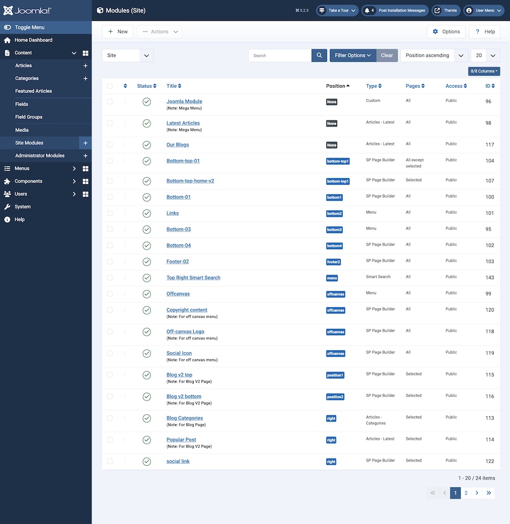 Apart from the few dozen extensions that are part of the quickstart installation (developed by Joomla and JoomShaper team), you can find thousands of additional extensions developed by third parties on the web. Most of these are listed on extensions.joomla.org, the Joomla Extensions Directory (or JED, as it is fondly called by the Joomla community). Anytime you can install additional modules, plugins or components. But remember the main rule: less is more, also in the security area.