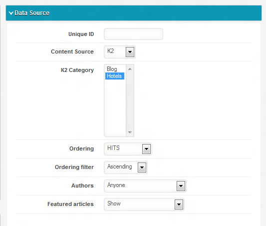 From Data Source options k2 is selected as Content Source.
