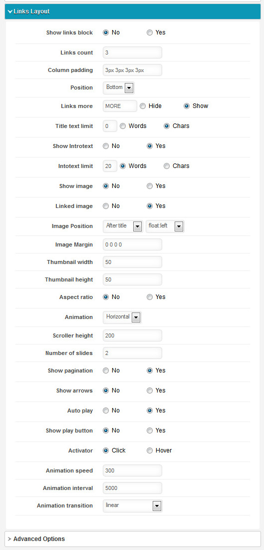 Link Count,Title text,Animation etc option have to be fixed here.
