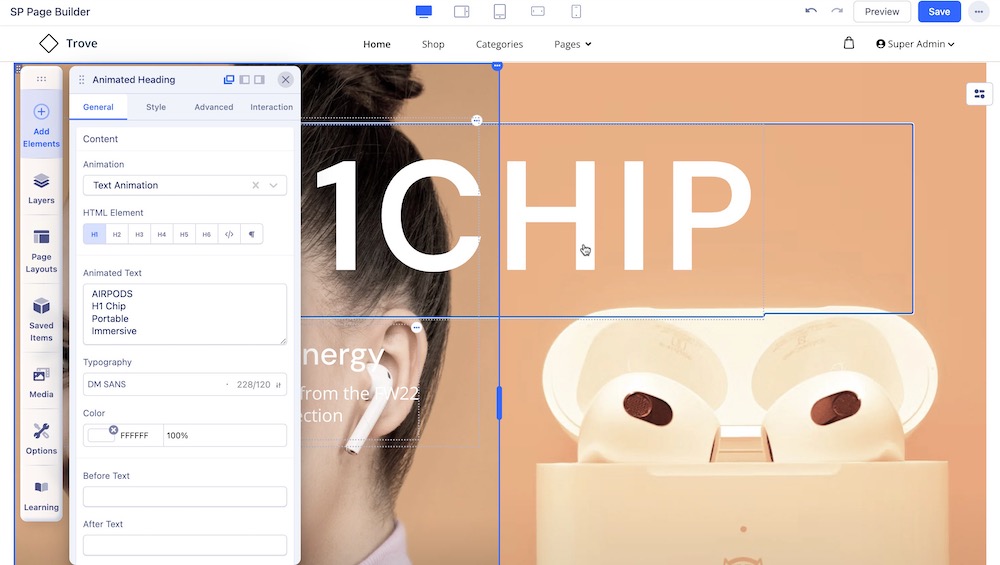 The Trove Joomla template's QuickStart includes a pre-made home page created using the SP Page Builder 5 Pro component, and only from this component can be edited and customized. You can find it assigned to the Main Menu as a Home item. You can edit and customize the page using SP Page Builder 5 Pro’s backend & front-end editor. To do that, from the Joomla dashboard, go to Components > SP Page Builder Pro > Pages and select the page you want to edit.