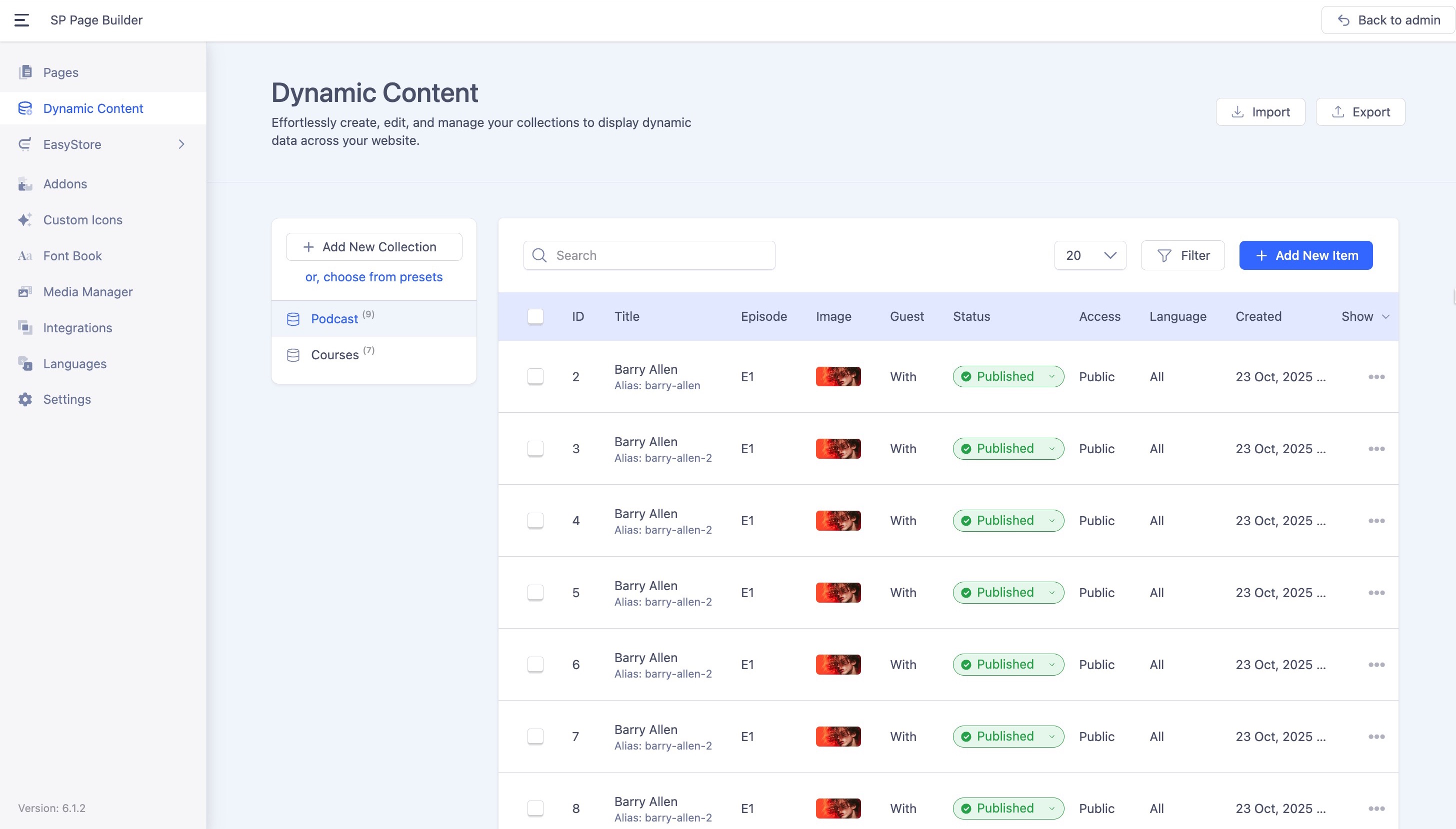 You can manage Dynamic Content directly from SP Page Builder’s dashboard: