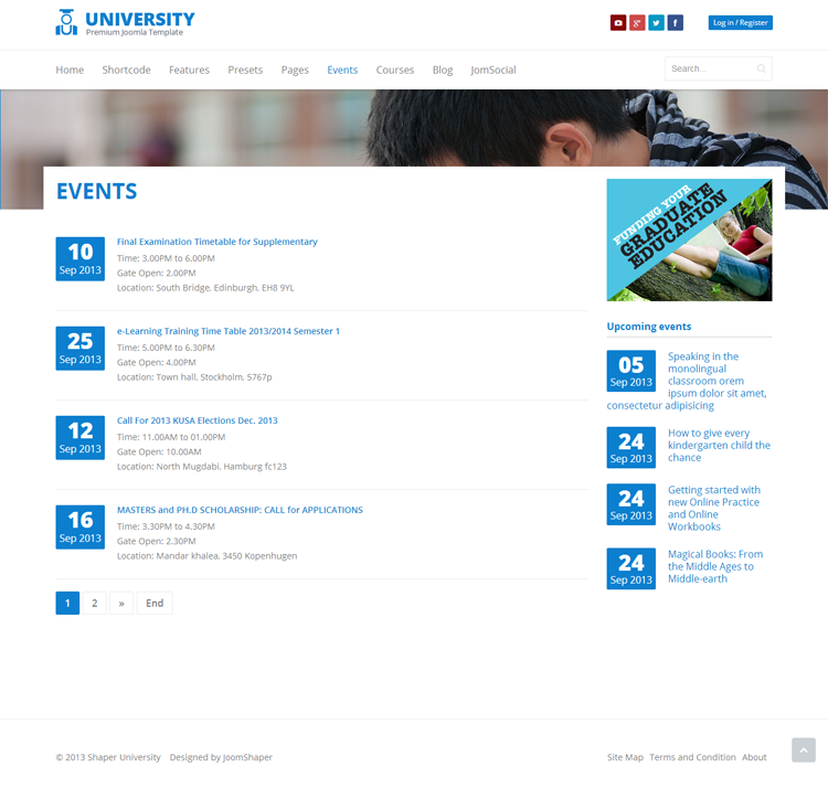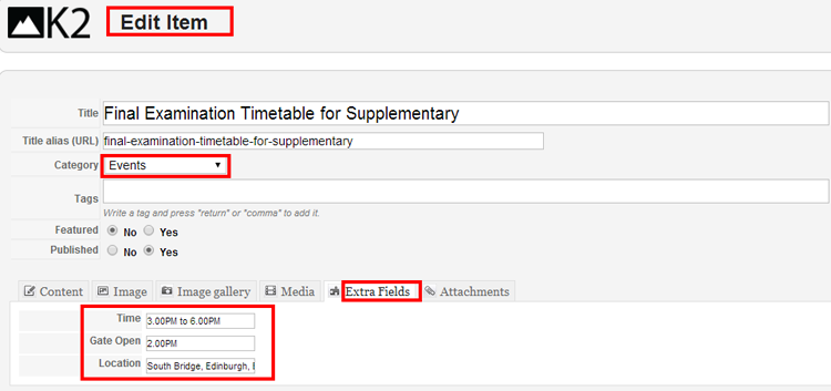 This events section Emphasized by k2. We used k2 extra field for create the events details.