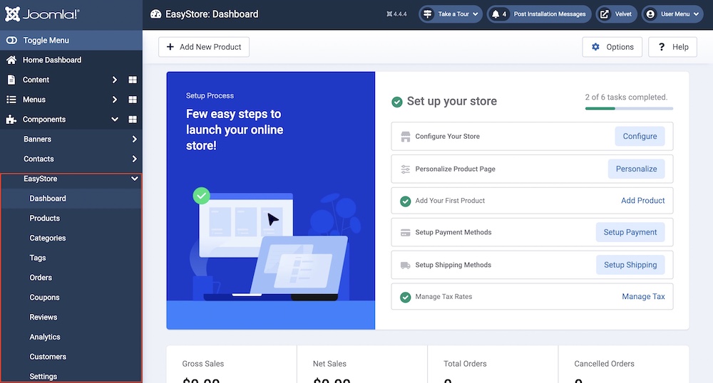 EasyStore is your go-to Joomla eCommerce extension, that will enable you to build your online store from scratch and equip it with everything needed for a lively online presence. It's packed with impressive and robust features like easy product creation, efficient inventory management, the freedom to choose your preferred payment and shipping methods, and more. You can also customize your storefront's pages with the dedicated SP Page Builder addons.