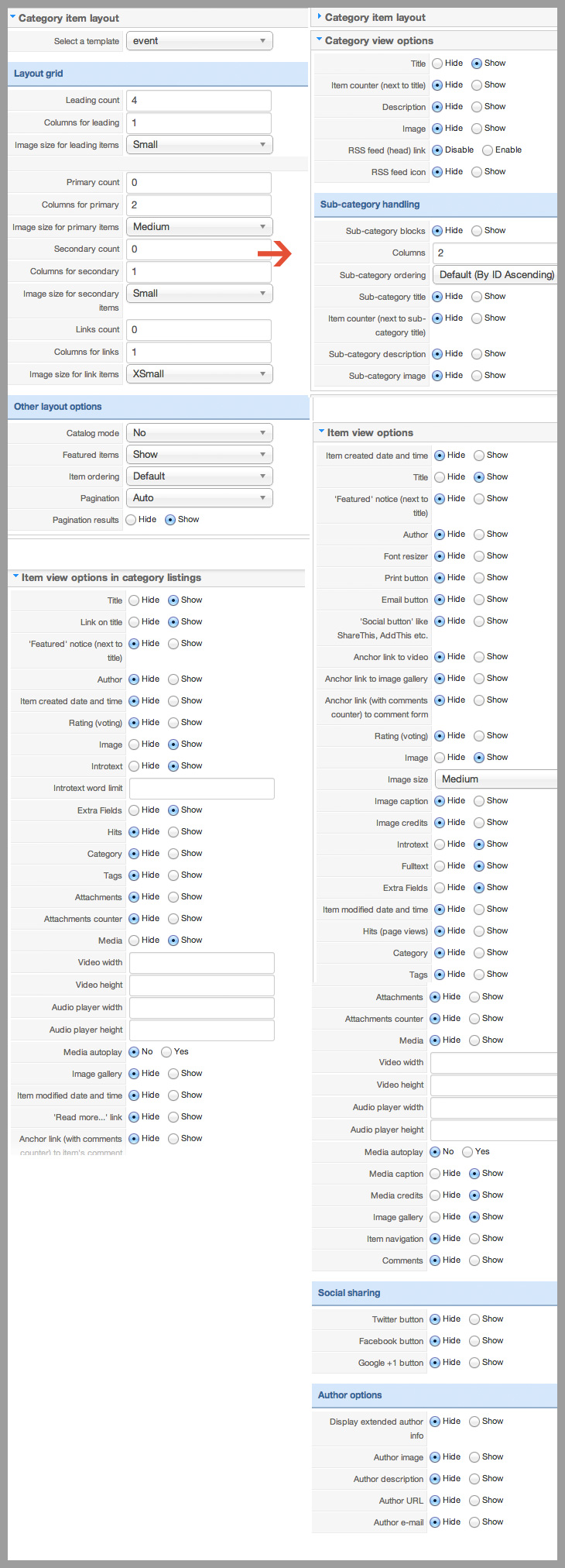 Event details settings