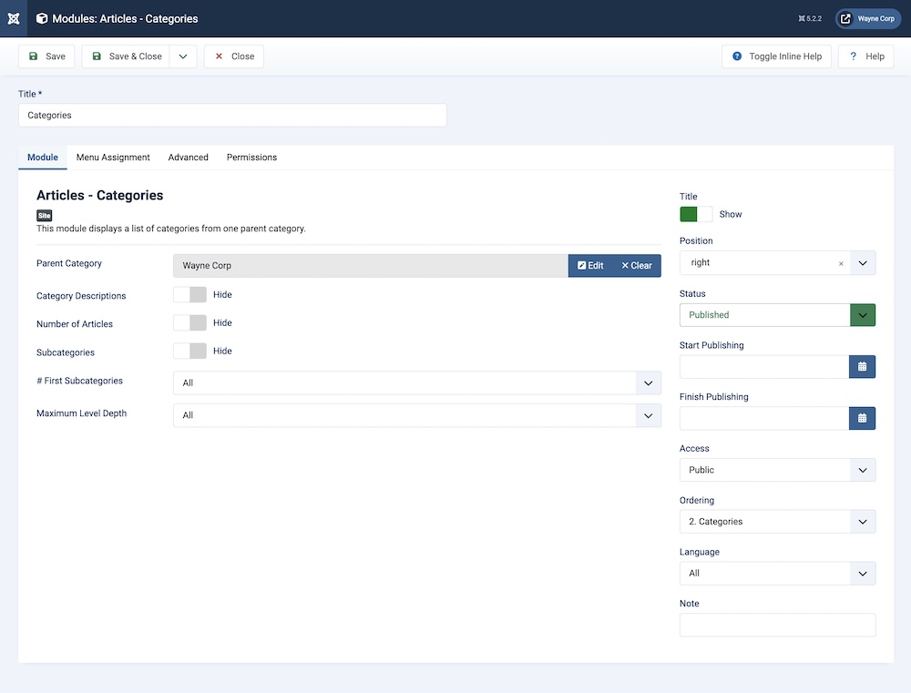 There are specific module class suffixes for every module used on the right side: wayne-categories