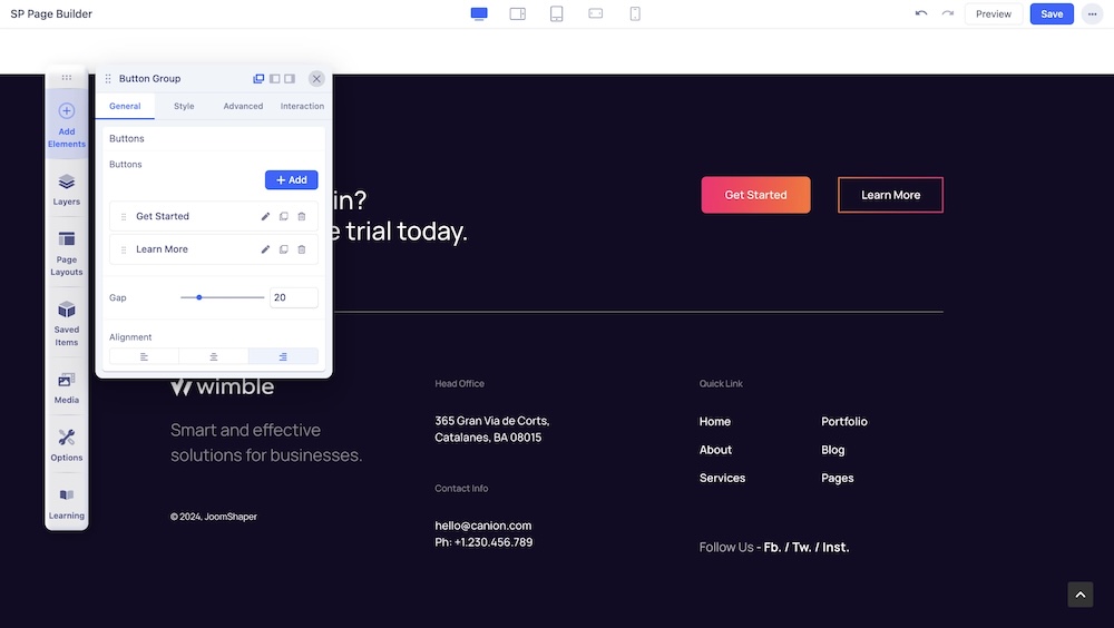 Bottom Layout Settings | Wimble - Documentation | JoomShaper