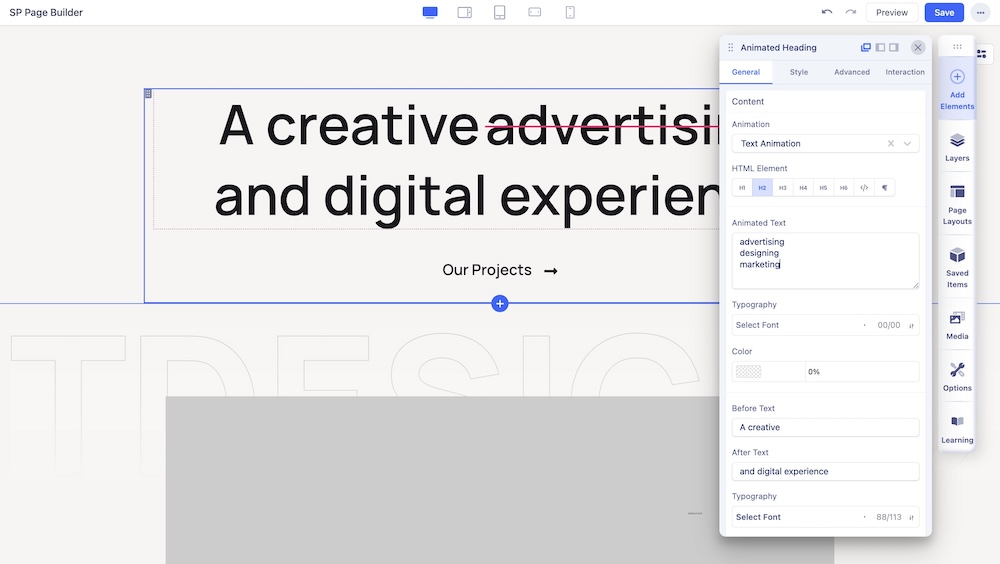 Interactive: Make an interactive web presence for your business. You can have videos in the hero section, showcase your activities, company info, and testimonials in an interactive home layout that your visitors enjoy most. Direct visitors to services with attractive CTA buttons. Showcase awards, company activities, and testimonials