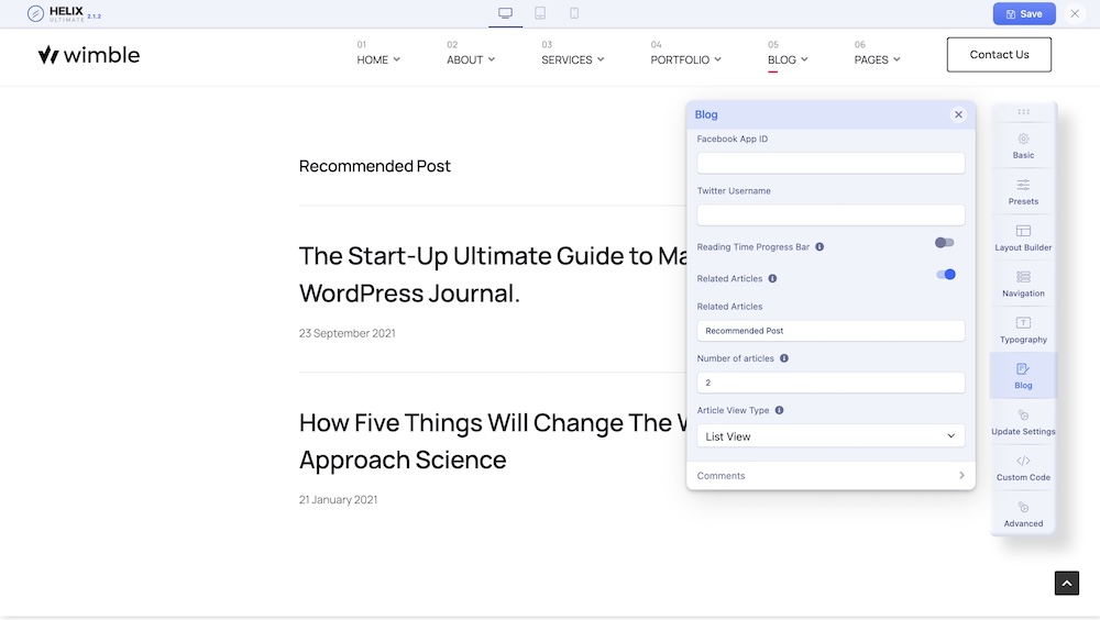 This feature can be accessed from System > Site Template Styles > Wimble - Default > Template Options > Blog > Details > Related Articles.