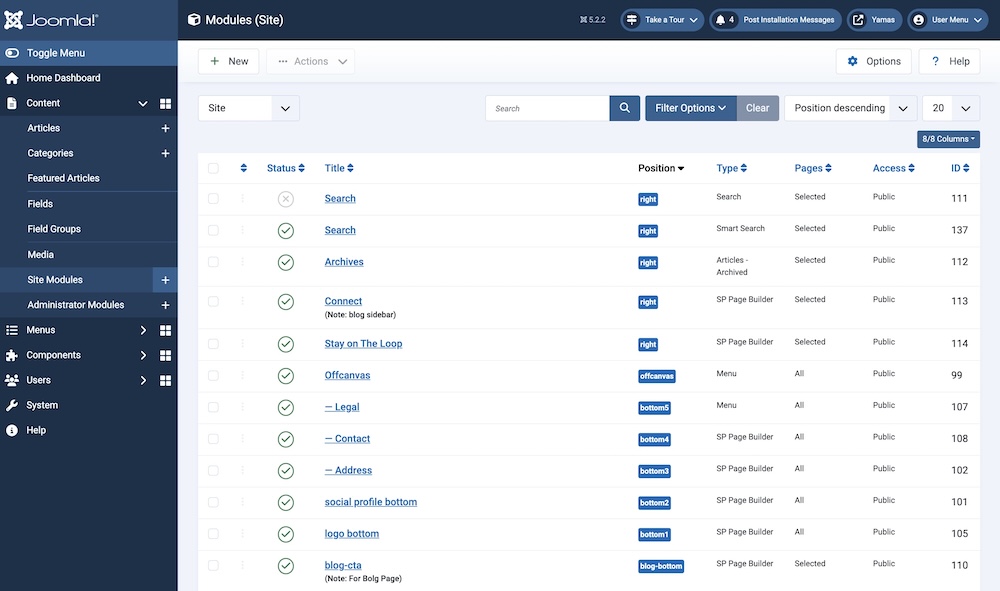 Bottom Modules in Yamas Template