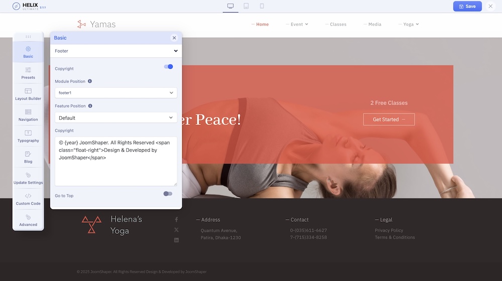 Bottom and Footer | Yamas - Documentation | JoomShaper