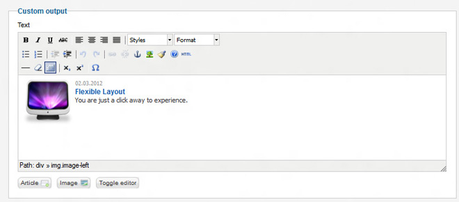 Desired text and images have to put at custom output field.