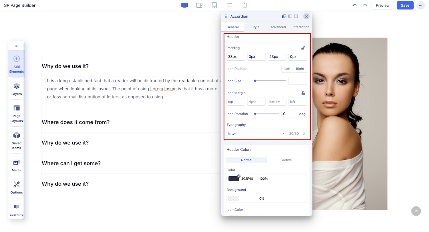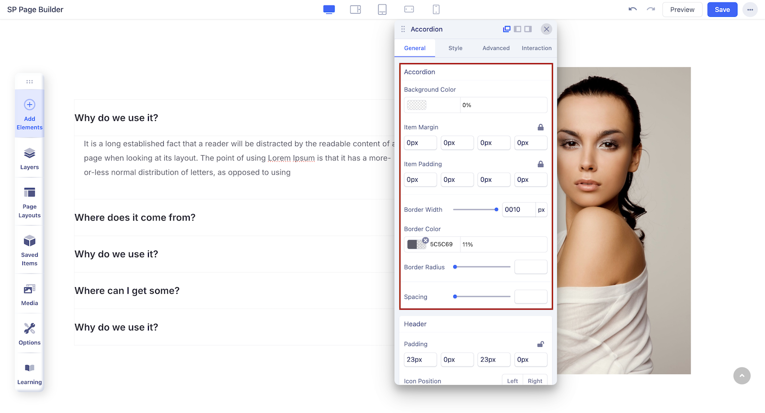 You can edit the appearance of your accordion item from this section. Set background color, add margin or borders, and customize the overall look of your accordion item.