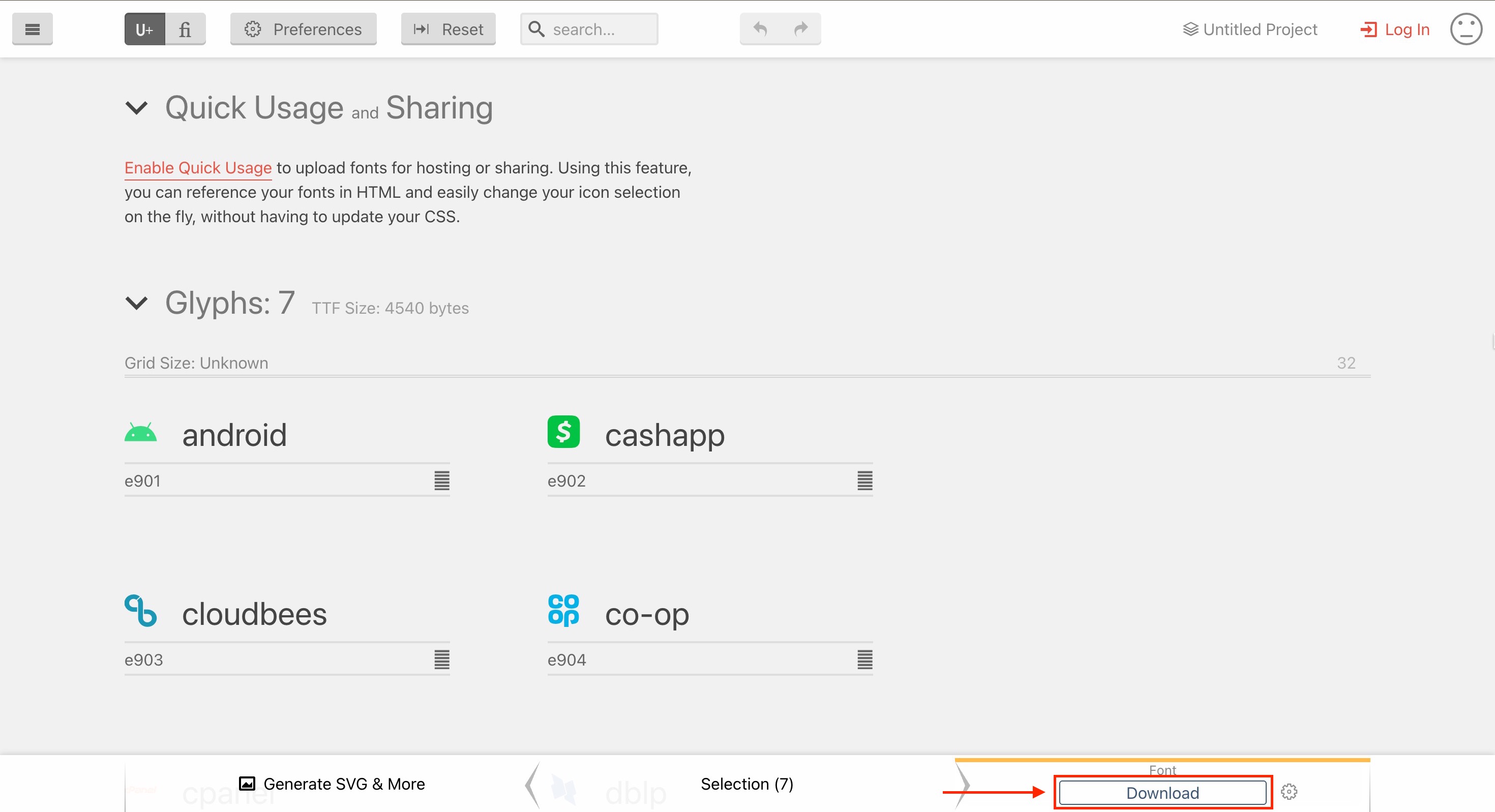 Click Download to get a .zip file containing your custom icon font and supporting files.