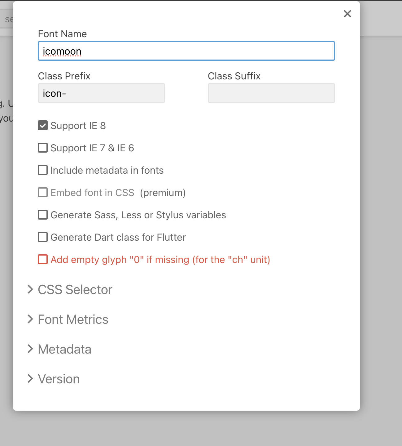 Before downloading, open Preferences to adjust settings such as font name, class prefix, or version.