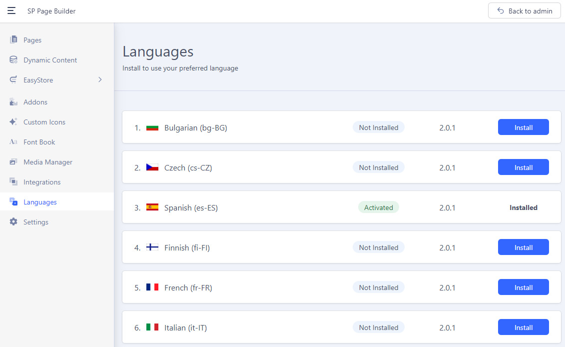 Languages | SP Page Builder (Pro) - Documentation | JoomShaper