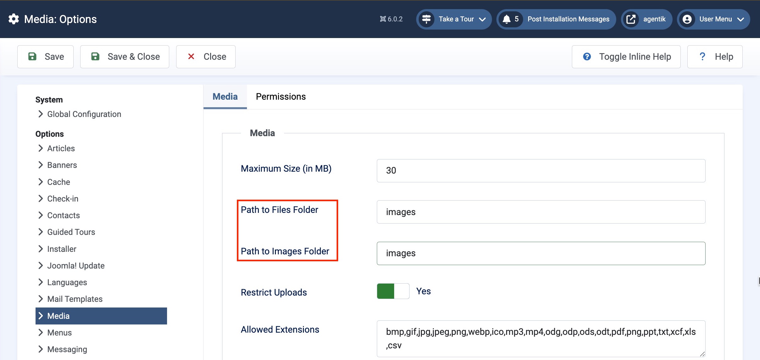 Note:If you do not use the following settings in Joomla's Media configuration, the SP Page Builder Media Manager will not detect the files and folders uploaded through Joomla’s Media Manager. As a result, any media added via Joomla will remain inaccessible within SP Page Builder unless this options are entered correctly.