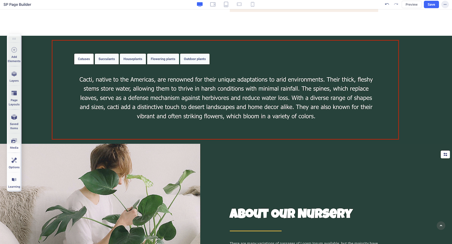 After adding the Tabs Addon to your page, simply click on it to access the settings panel, where you can customize its appearance and functionality to suit your needs.
