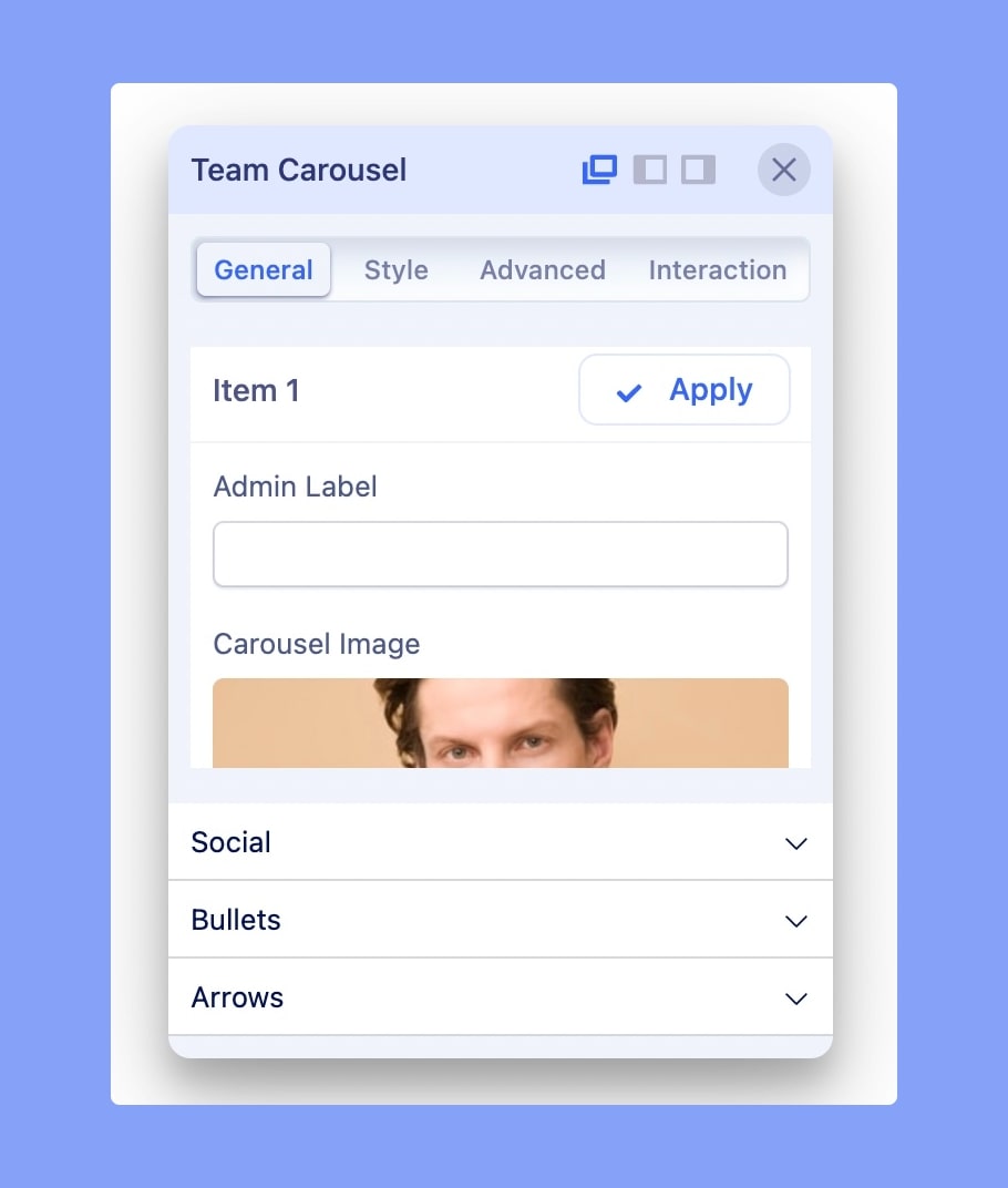 This is the first section you will get when you enter the General tab. You can add multiple slides to your carousel and showcase them in 3 different layouts. Select your desired carousel layout and customize it your way. 3 of these carousel layouts vary based on their content and image positioning. Each of these layouts is unique and has its own design needs.