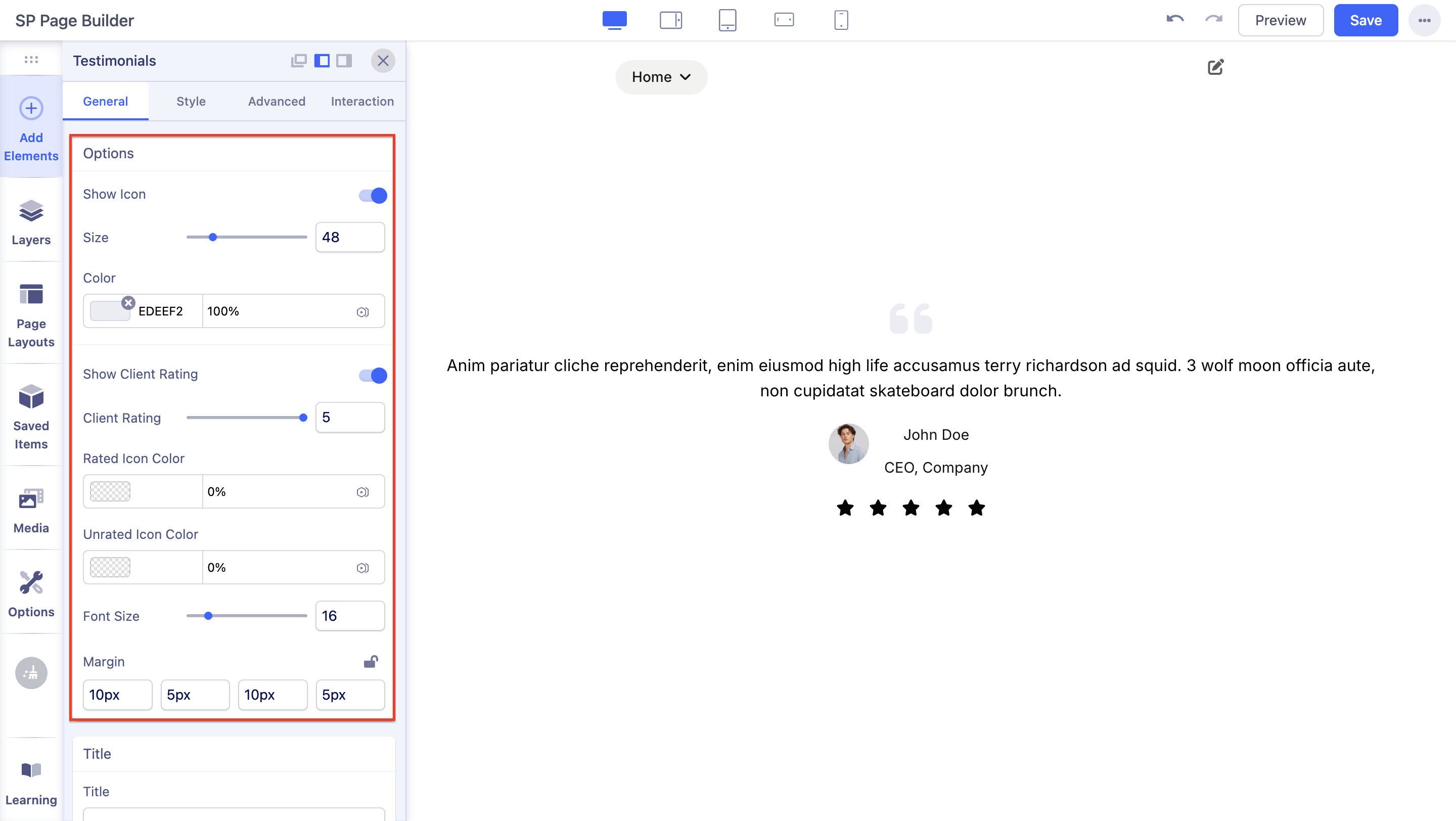 You can also add a Title to your Testimonial. Go to the Title tab on Testimonials Settings to access this option.