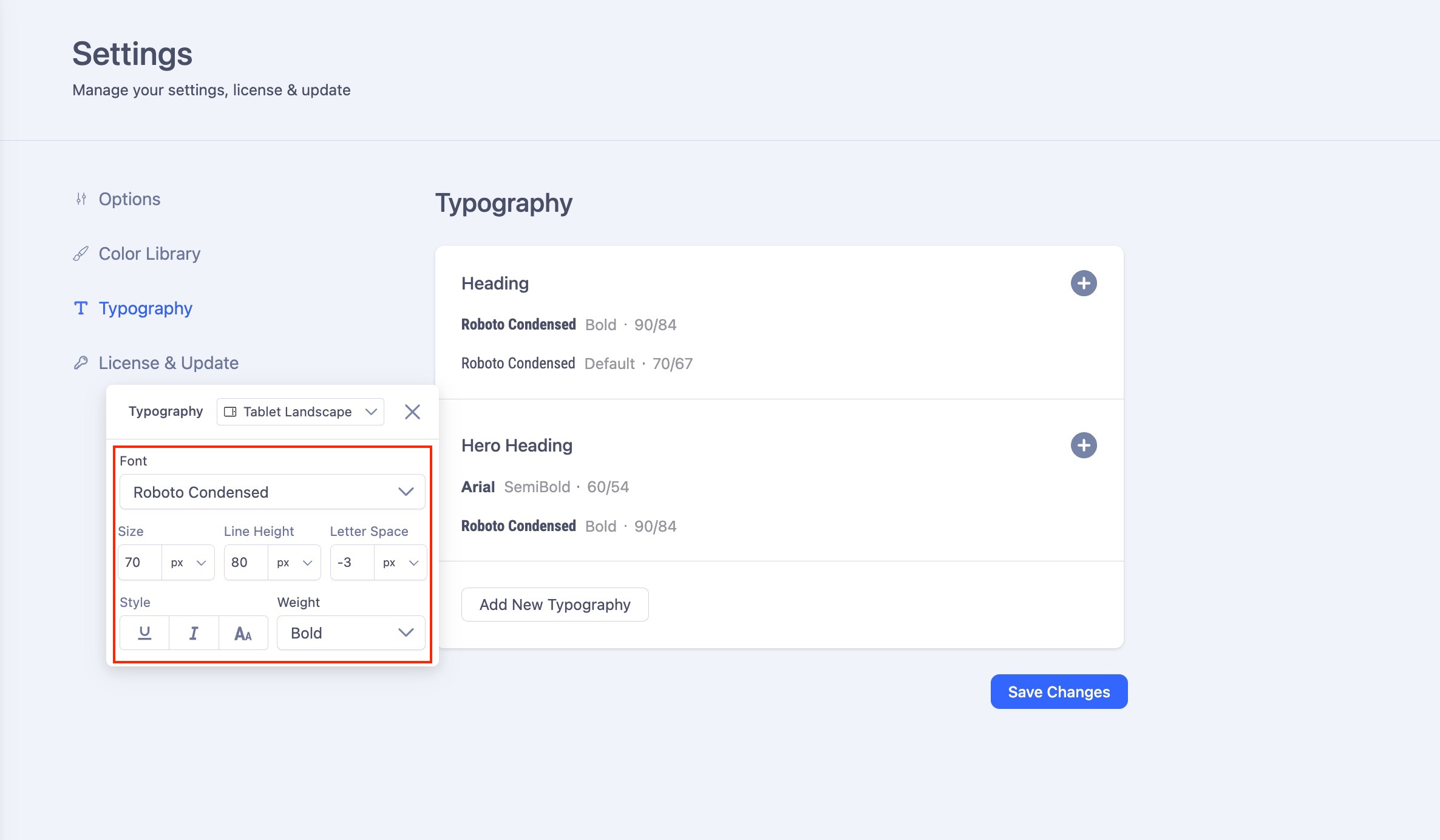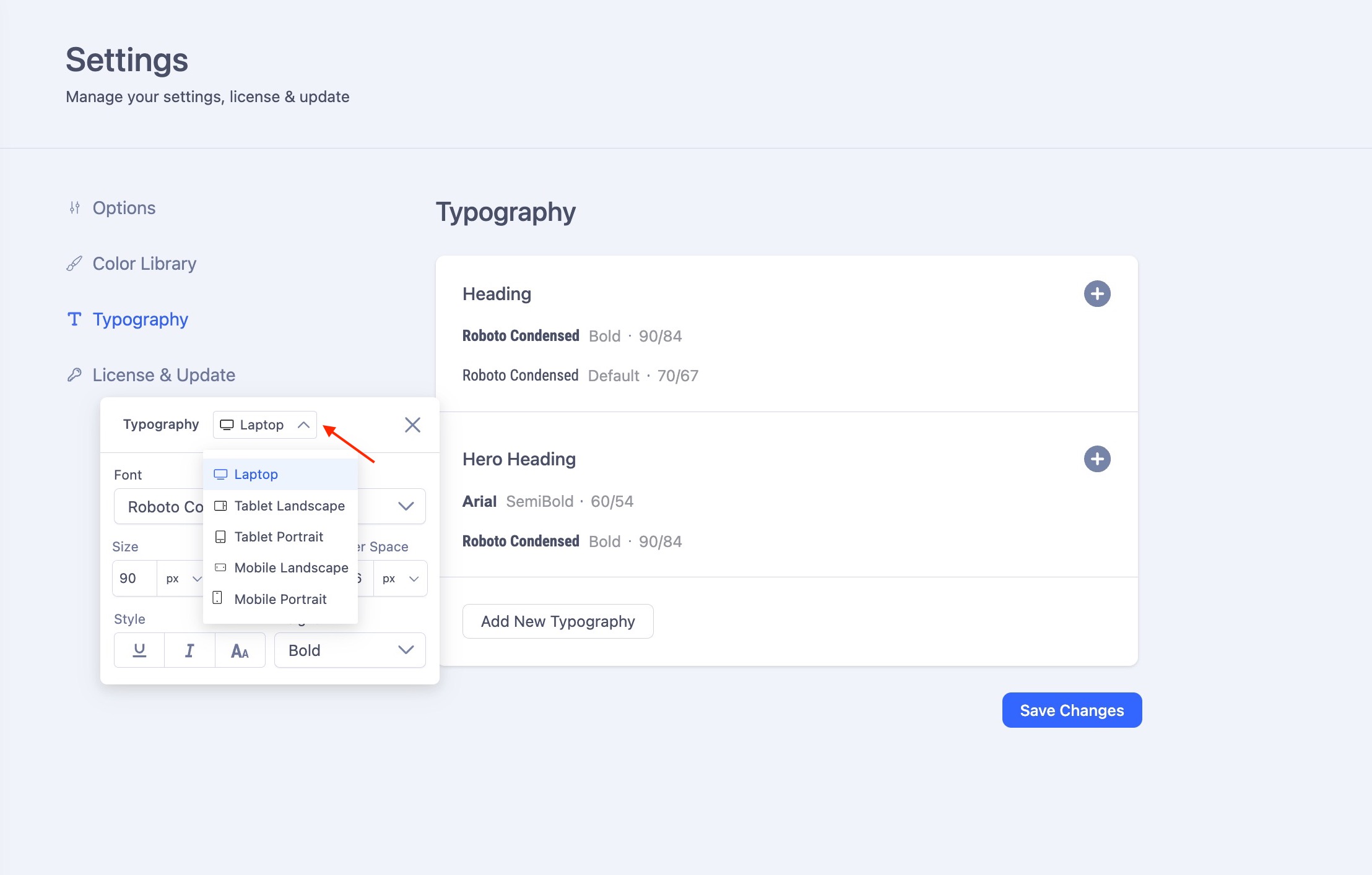 Switch between Desktop, Tablet, and Mobile to fine-tune your typography for each. Hit "Save Changes" once you are done.