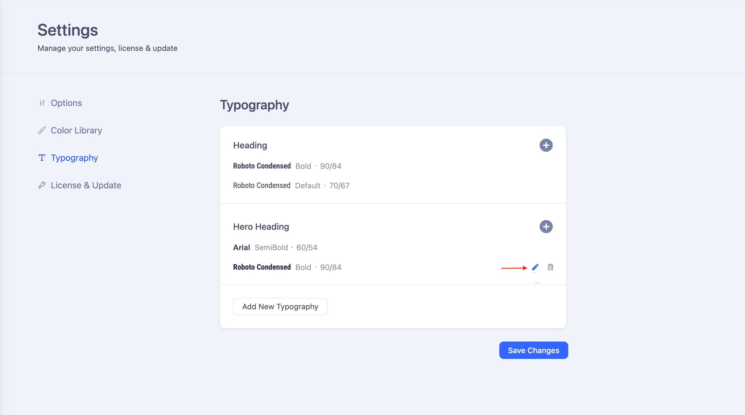 Choose a Typography item you'd like to adjust. Click on the edit icon adjacent to your chosen item.