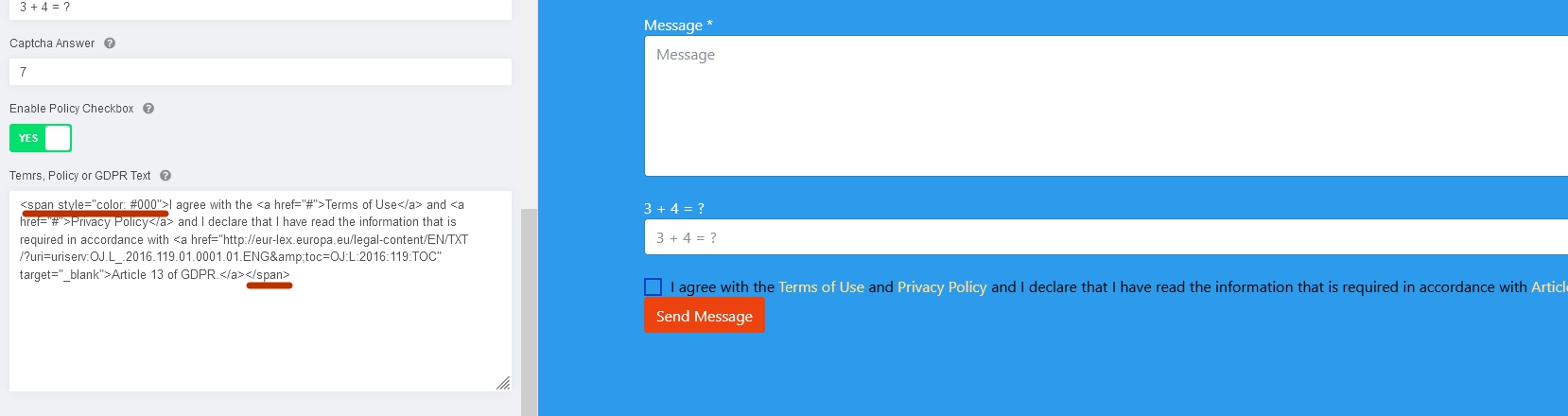 I really do not understand what you tlking about. Just take a look at the first link. The text at the bottom of the form is WHITE ? Right ? I want it BLACK.