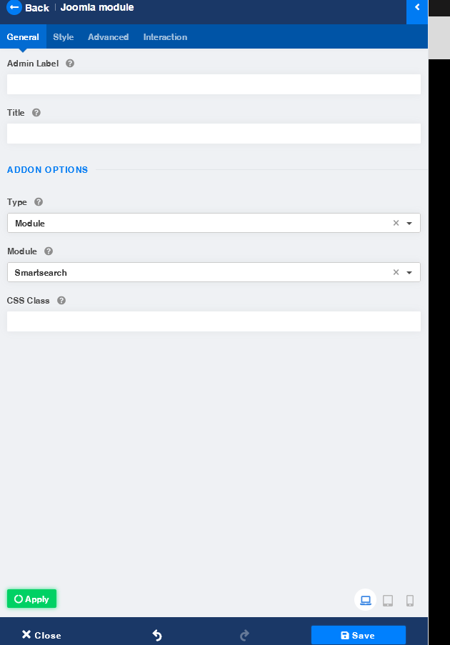 Hello, i want to load the searchmodule with the pagebuilder. if i choose for example "Main Menu" it works but if i chosse module "smartsearch" and klick "apply" nothing happens. Any idea?