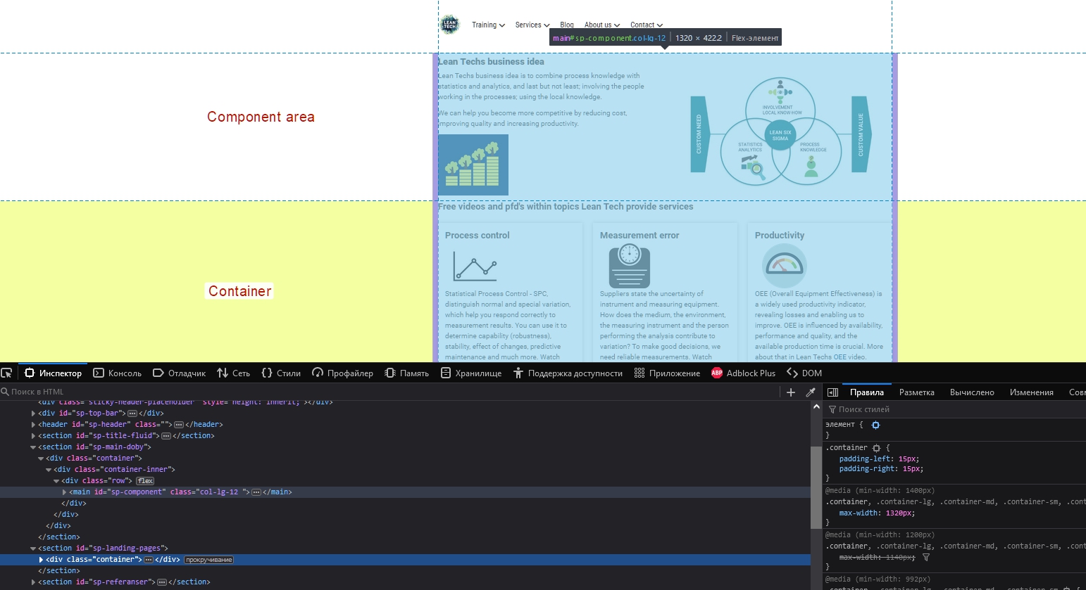 I asked for help previously because the component area was fluid and someone at your team added the following css code to my template: