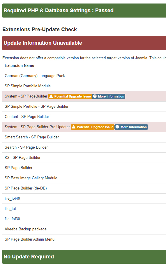 None of the answers were helpful, no extension was marked as "critical" before the update to version 4, only SP-Page Builder was marked as "unknown". The update went through without any problems, only the Joomshaper product SP-Portfolio does not work.