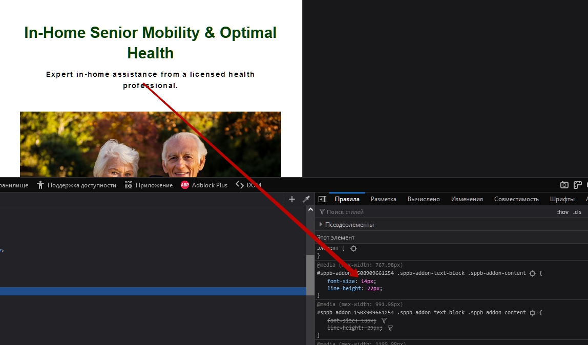 Upon browser inspection, this is what font size the section ends up showing, despite being manually set in the addon: @media (max-width: 767px) body { font-size: 13px; }