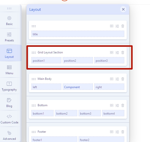 Using the standard Helix settings, divide the section into three columns, add the necessary positions and use the CSS Grid Technology to create any layout of these three columns