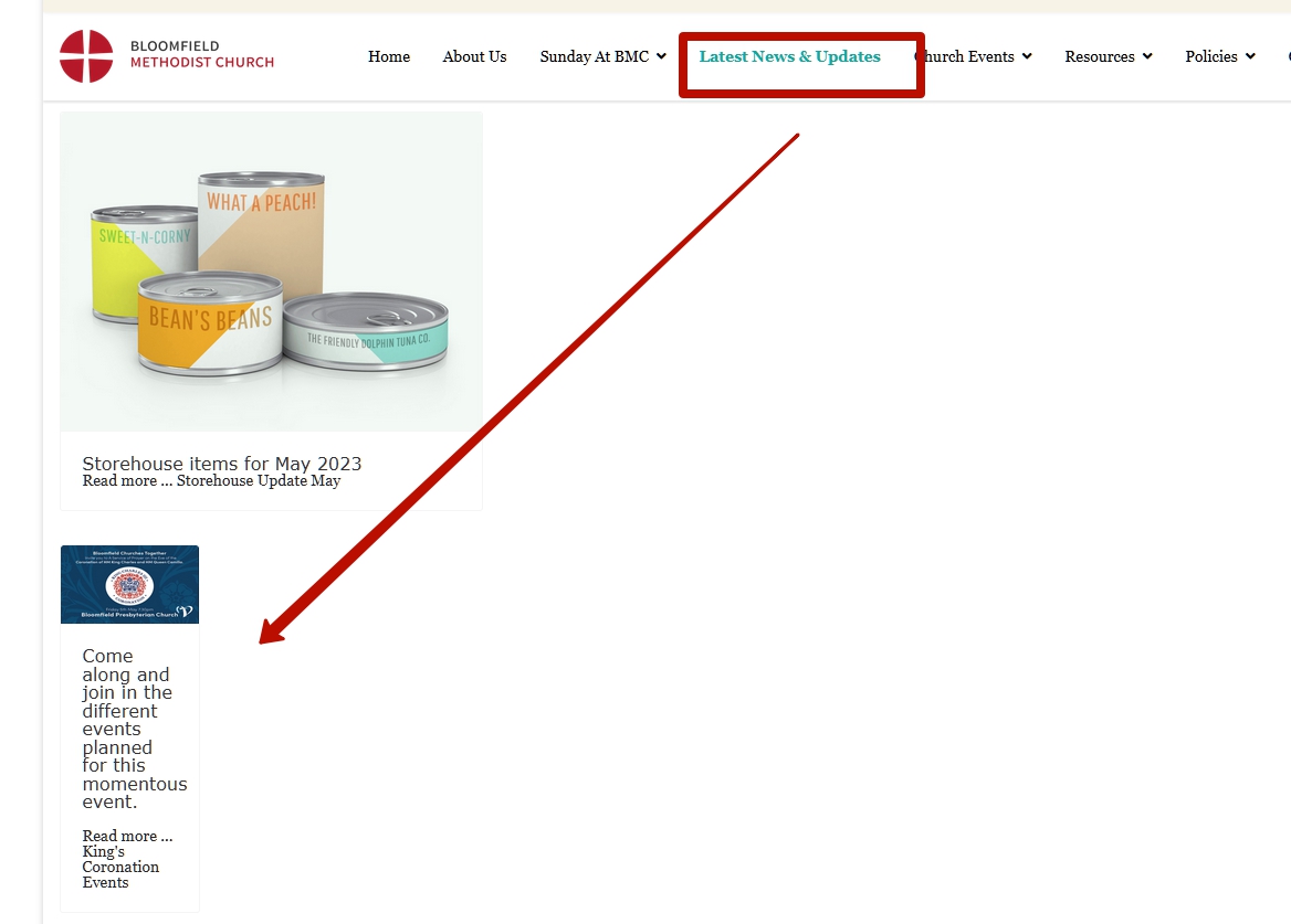Site is here https://www.bloomfieldmethodist.org.uk/index.php and it's the Latest News section 1/2 way down the page.