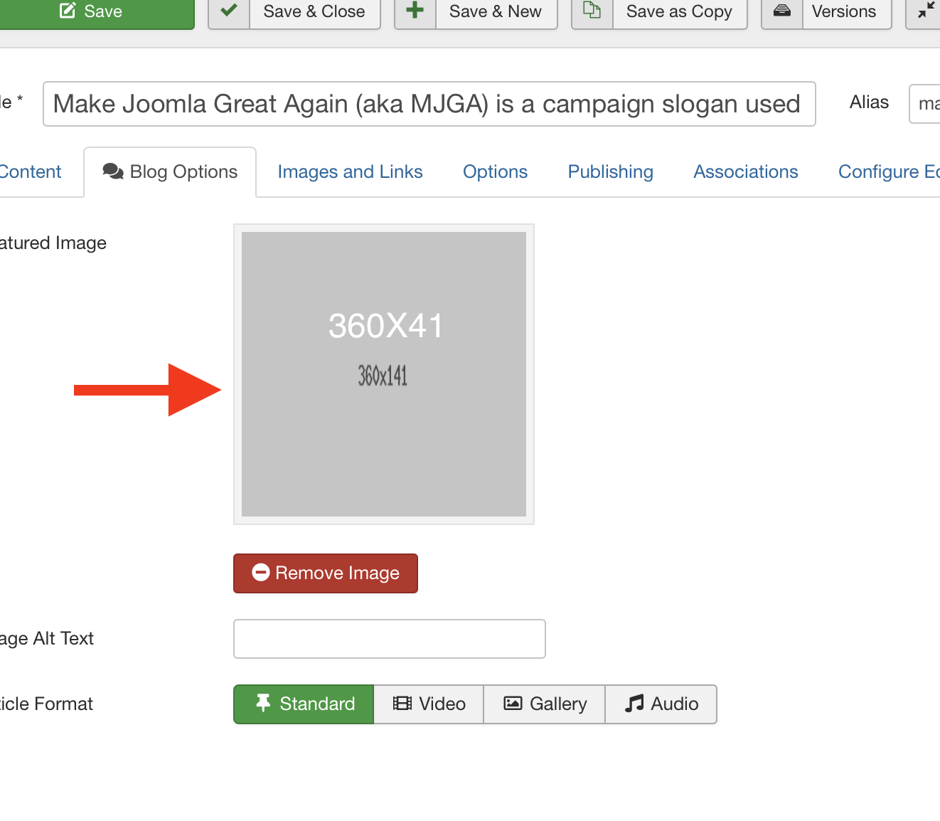 Hi thanks I have the same problem. when you upload an image featured image within the Blog Options tab the dimension of the image remains the same in any place the article is showed. but in your tmeplate / view they have different size and are different images. for istance see first image in the home page it has a size of 750X450 the second image is inthe article : it has a size of 1140 X760 the third image is in Blog Options tab as you sugget and has a size of 360/141 the forth image is in other view and has size of 160/150