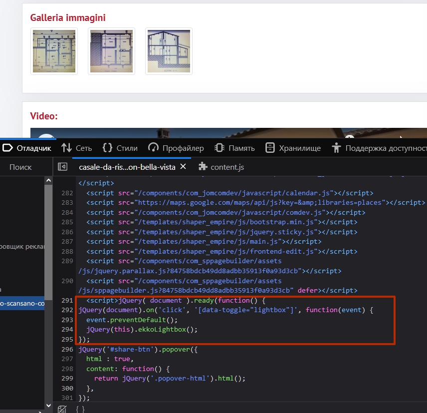 Hi, I'm using an external component to show properties. With helix based template, lightobox pop-up doesn't work You can see it going to "Galleria immagini" section on those pages https://tuscanary4.undercon.it/immobile-in-vendita-in-toscana/casale-da-ristrutturare-vicino-scansano-con-bella-vista https://tuscanary4.undercon.it/test-helix/casale-da-ristrutturare-vicino-scansano-con-bella-vista