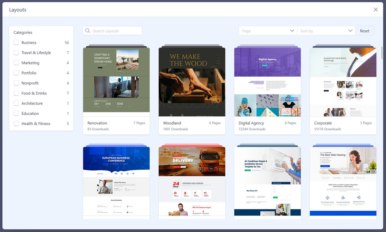 Primary templates are available to download, but page templates are free with SP Page Builder Pro, can be found within the layout section of the SP Page Builder editor panel, and, are only available to export/import.