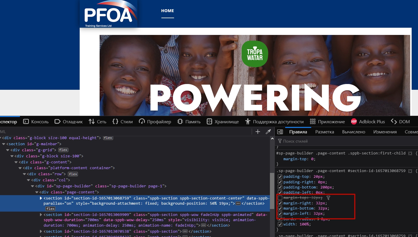 "It's not that it's not fitting within the Theme frame, it's not fitting within it's own frame. See attached. I have the main SP wrapper (.platform-content container is identical) highlighted in the Inspector and you can see the visual highlighting above (blue overlay)... you'll see the content spilling out the rightside of that. Unsure if that's intentional design or a conflict, but the Theme/Gantry is properly framing the rendered content."
