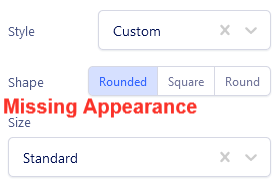 When custom is selected in the Style field. The Appearance field is missing and must be present.