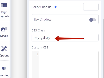 Add your own class to the Gallery Addon settings (Style Tab > scroll down > CSS Class field).