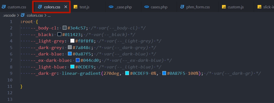 For convenience, I usually create a separate CSS file with color variables to quickly copy/paste