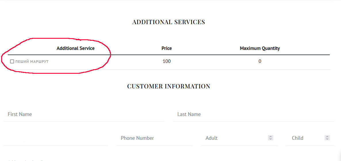 Hello. When I click "Book Now" the order page opens. In the first place is the choice of additional services. I do not need to display additional services in the order. I have disabled all additional services (see additional_services_1.jpg). Also in the Package settings the ability to select additional services is disabled (see additional_services_2.jpg). But in the order the choice of additional services is set (see additional_services_3.jpg). Why are additional services included in the order? How to fix it?