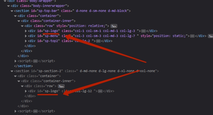 Duplication of ID on one page is not acceptable, even if it is in a hidden section. Therefore, you should completely remove the section-2 containing the logo. And do everything through CSS.