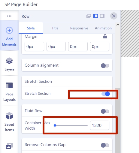 And addition, there is another bug. If you activate the Column Alignment option, the Stretch Section option stops working correctly - the container begins to stick to the left border of the browser (in live view).