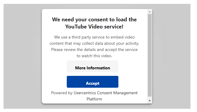 If you use the Usercentrics cookie banner together with the video add-on in the SP Page Builder, the message that you must first accept YouTube is correctly displayed before accepting the YouTube service.