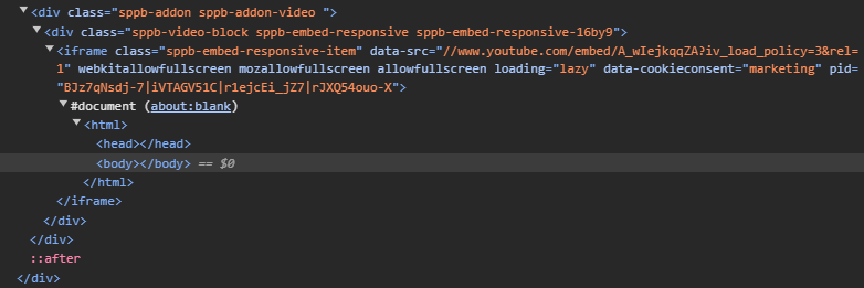 If you look at the code, you can see that the body inside the YouTube iFrame is empty: