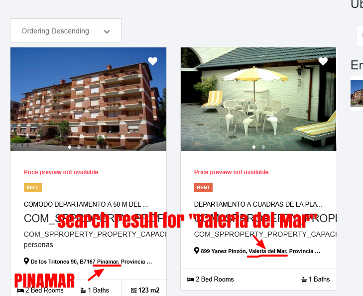 Supposedly, if I select "VALERIA DEL MAR" in the drop-down list, it should ONLY show those properties, but it returns the ones for PINAMAR as well (even though "PINAMAR" is a different city).